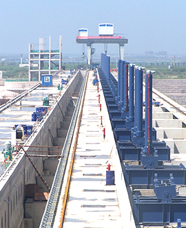 公司專業(yè)生產(chǎn)的各類平面、弧型閘門,各類卷揚、門式、移動式啟閉機,各類清污機、攔污柵、升船機、壓力鋼管、錐形閥等超大型、大型水工金屬結(jié)構(gòu)件和各類起重機遠銷全國26個省、市、自治區(qū),并出口到16個國家和地區(qū),廣泛應(yīng)用于全國重點工程建設(shè),如長江三峽永久性船閘工程、淮河蚌埠閘擴建工程、浙江溫州珊溪水利樞紐工程、四川岷江紫坪鋪水利樞紐工程、浙江省分水江水利樞紐工程、中國河口第一大閘曹娥江攔河大閘和港口、船舶制造企業(yè)等。